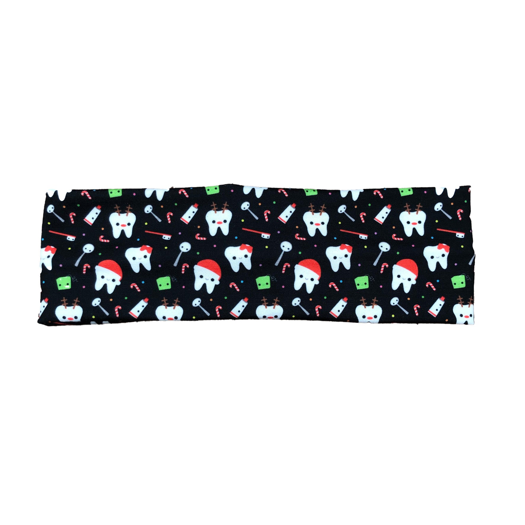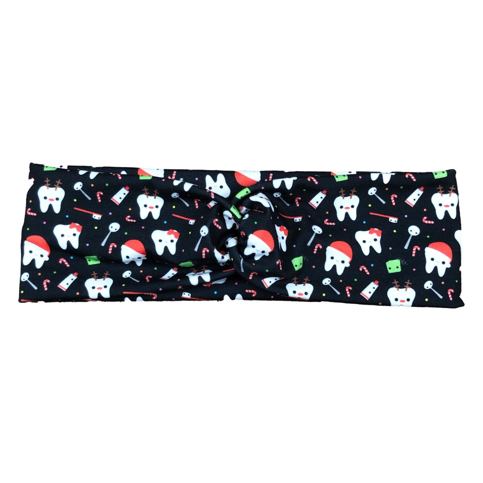 Fun and festive Christmas teeth dental headband for women with front twist in black, periwinkle, light blue or pink. Perfect for your favorite dental professional to keep their hair out of their face while working and bringing smiles to their patients! Handmade from lightweight, super soft stretch fabric.