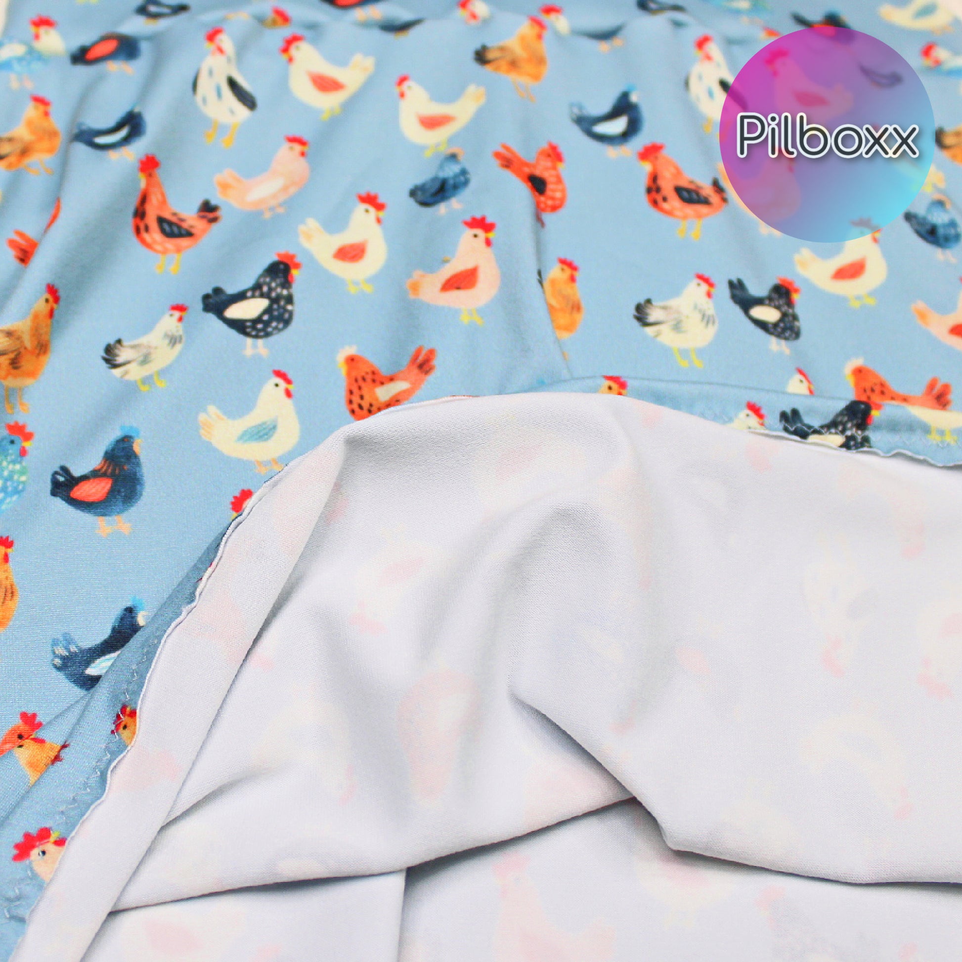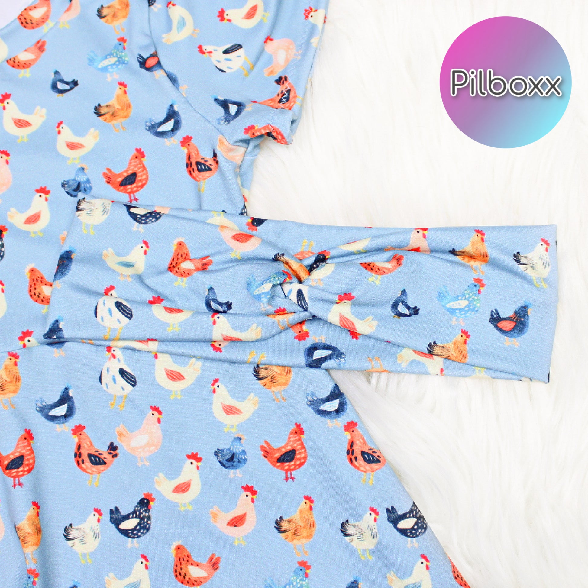 This blue spring sundress for girls features a cute chicken pattern that is perfect for any chicken-lover! Handmade from super soft and comfortable stretch fabric, your little one will be feeling so pretty. Pair this beauty with some comfy leggings and cute boots and you're good to go! Pullover style and tagless.