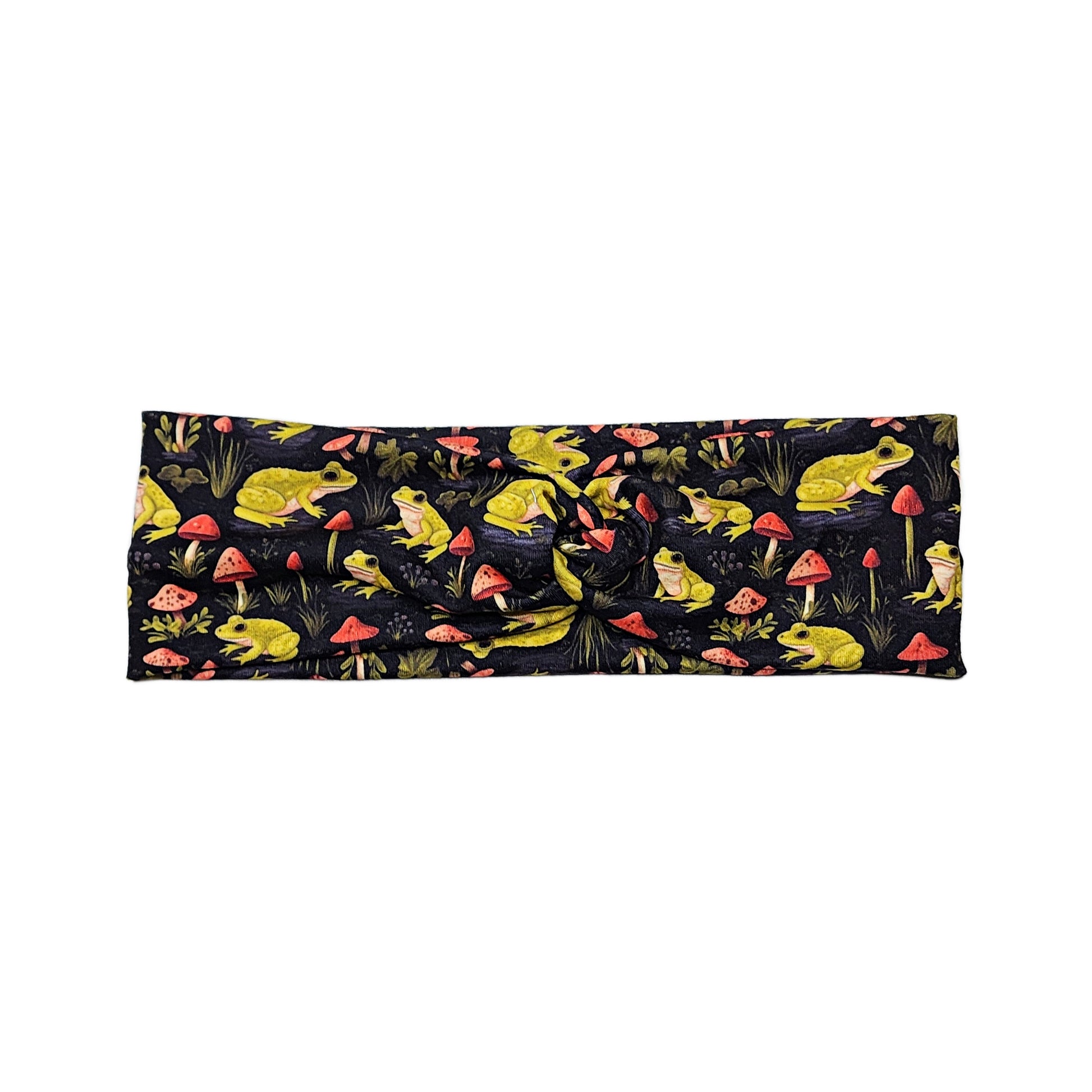 Frogs and mushrooms headband. Perfect for lazy days and gym days! Handmade from lightweight, super soft, stretch fabric. Gift your bestie the gift of compliments and confidence with these headbands. They're guaranteed to bring smiles and attention with all the different styles and unique prints.
