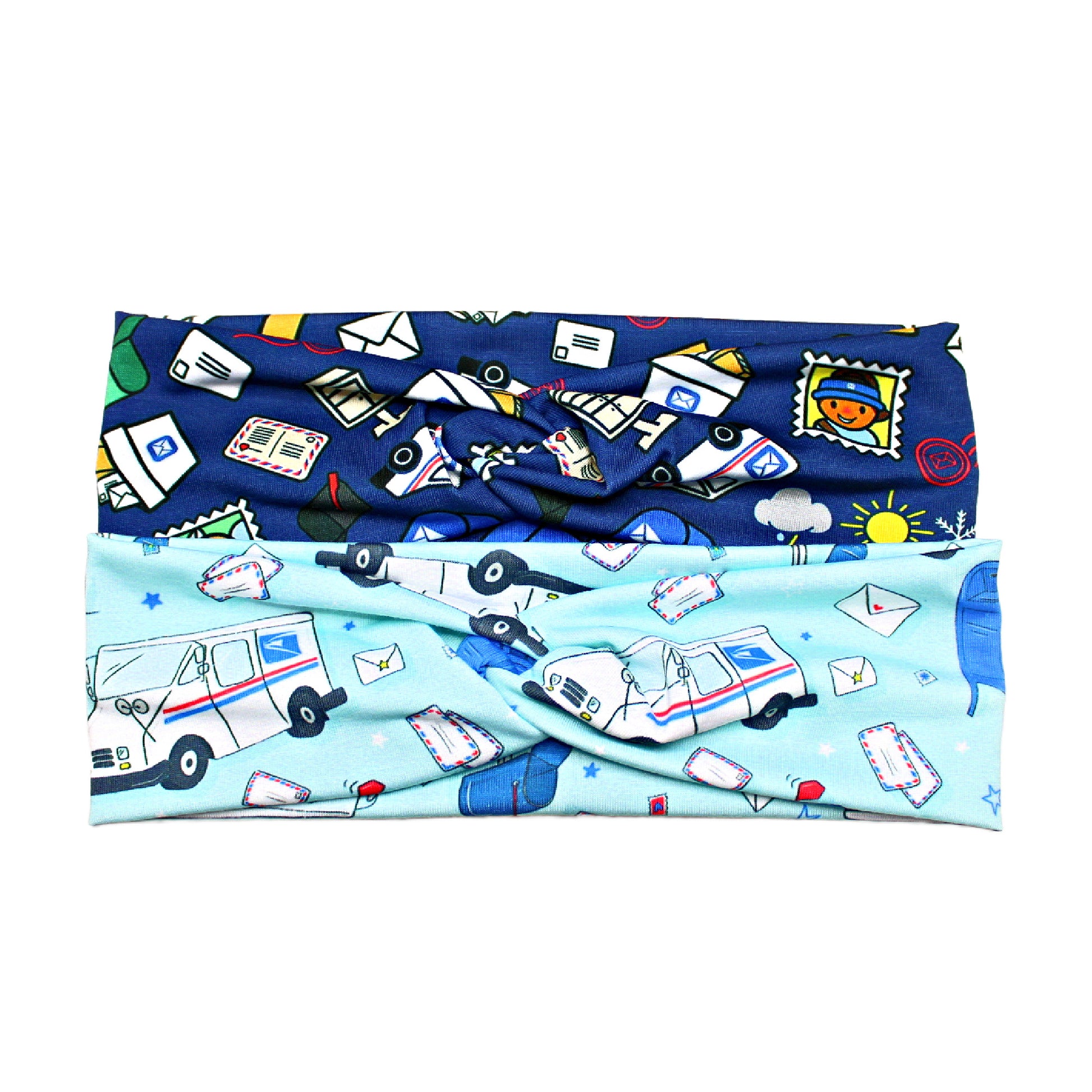 Fun mail truck twist headbands for women, handmade from comfortable, stretchy fabric. These make great "thank you" gifts for your delivery woman!! If you deliver letters and packages for a living, you'll want to keep your hair out of your face, especially in the summer. Pull the hair band over your ears in winter, too, to keep them warm!
