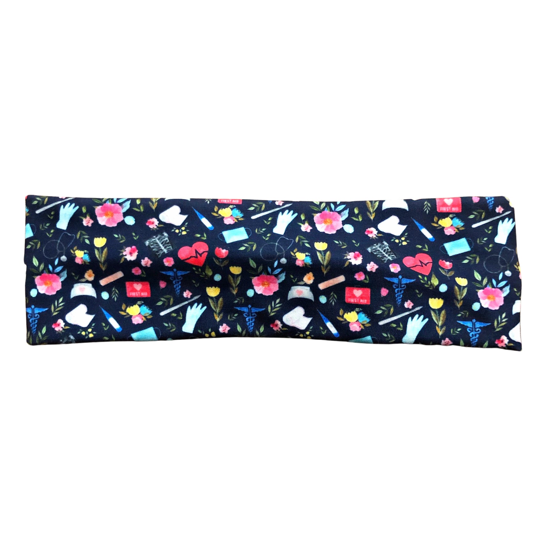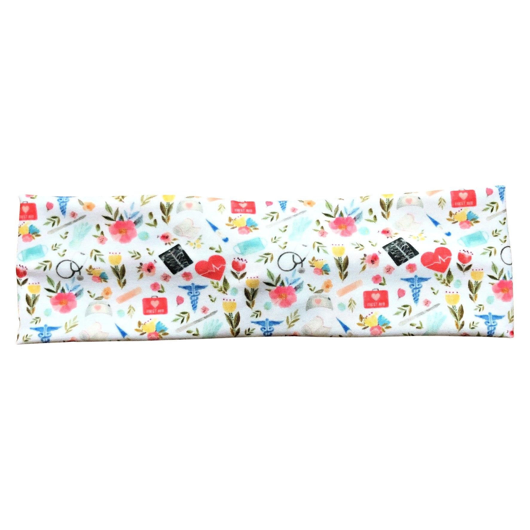 Medical Print Nursing Headband for Women with front twist. Perfect for lazy days and gym days! Handmade from lightweight, super soft stretch fabric. Gift your bestie the gift of compliments and confidence with these headbands. They're guaranteed to bring smiles and attention with all the different styles and unique prints.