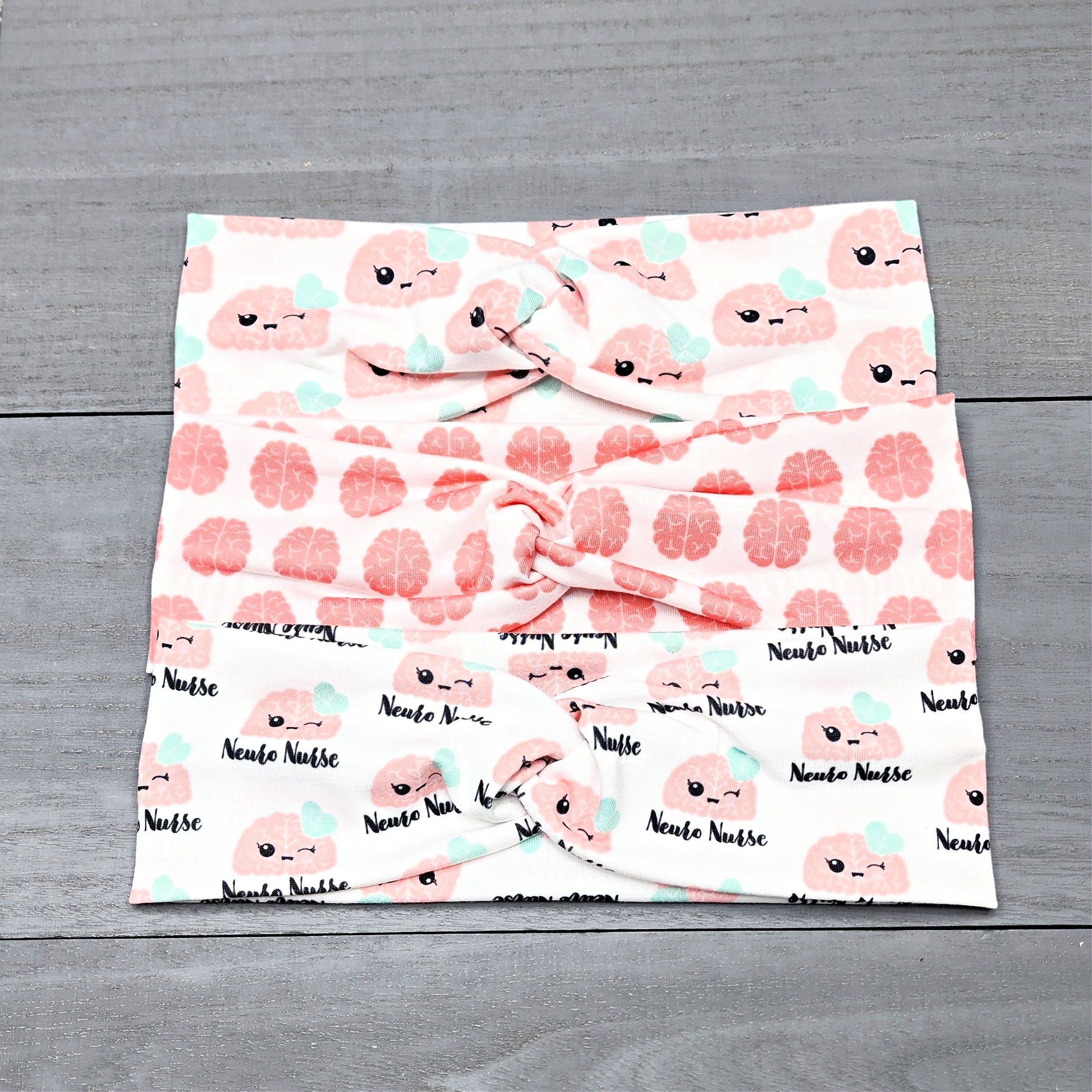 Choose from three different neuro nurse print headbands with front knot detail. Handmade from lightweight and comfortable jersey knit fabric for everyday wear. Also available in a 5" width.