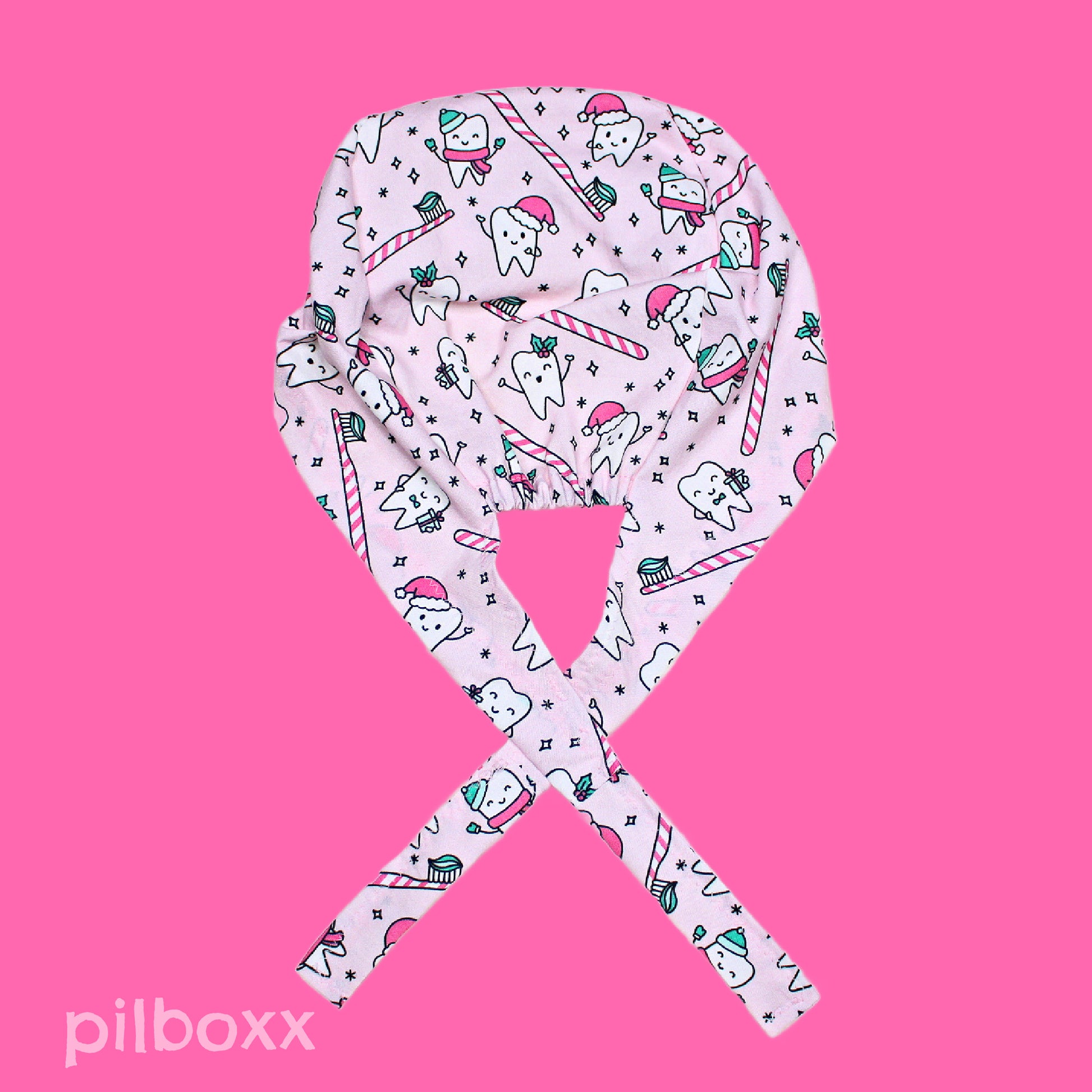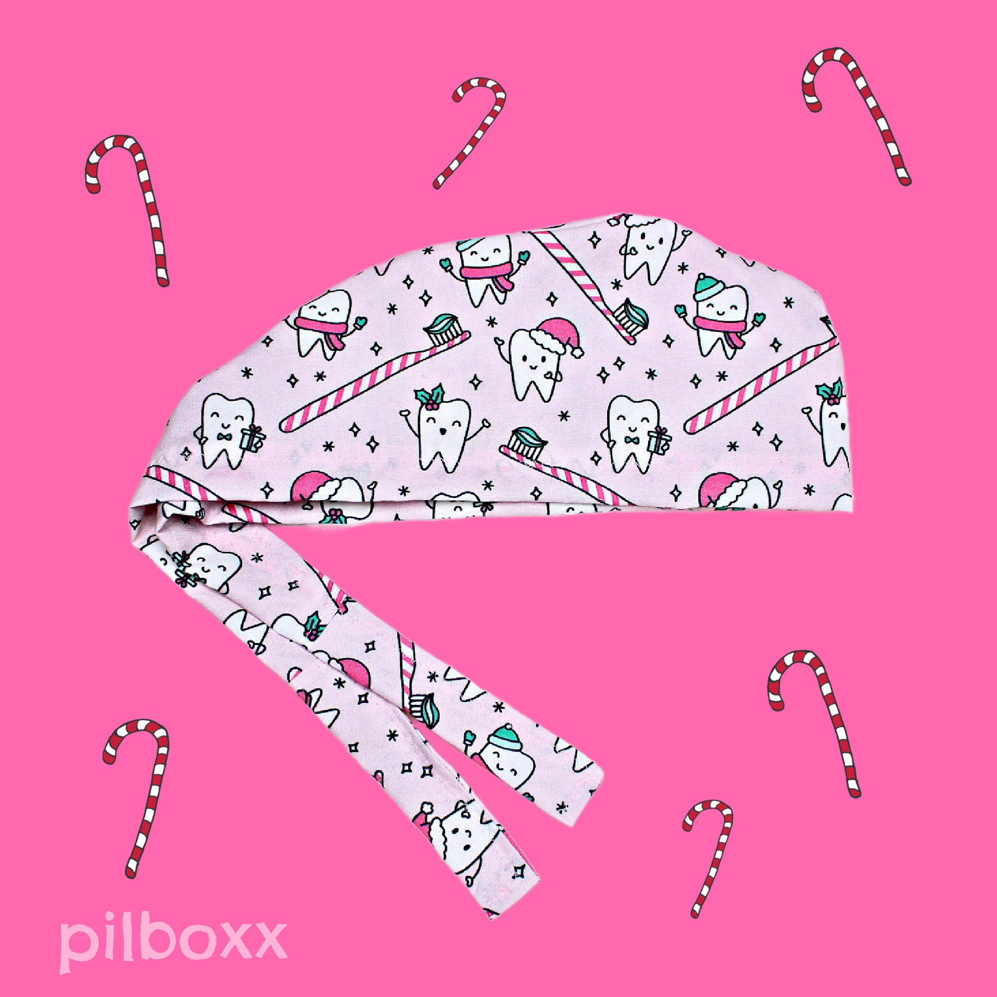 Pink Christmas teeth dental scrub cap with elastic and ties handmade from 100% cotton. If you want a custom print, message me! :)