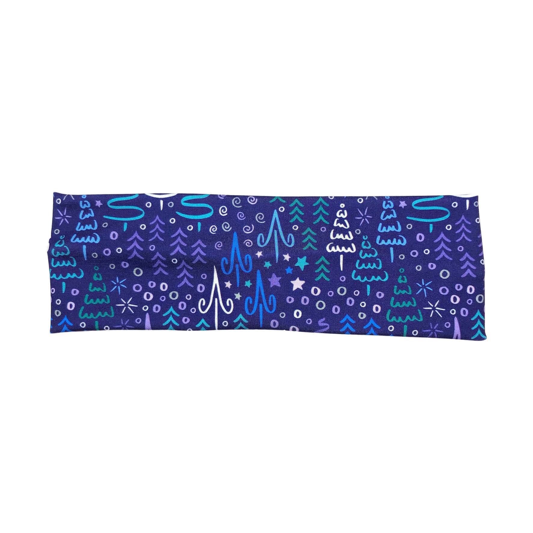 Purple Christmas Tree Headband for Women with front twist*. Perfect for lazy days and gym days! Handmade from lightweight, super soft stretch fabric. Gift your bestie the gift of compliments and confidence with these headbands. They're guaranteed to bring smiles and attention with all the different styles and unique prints.