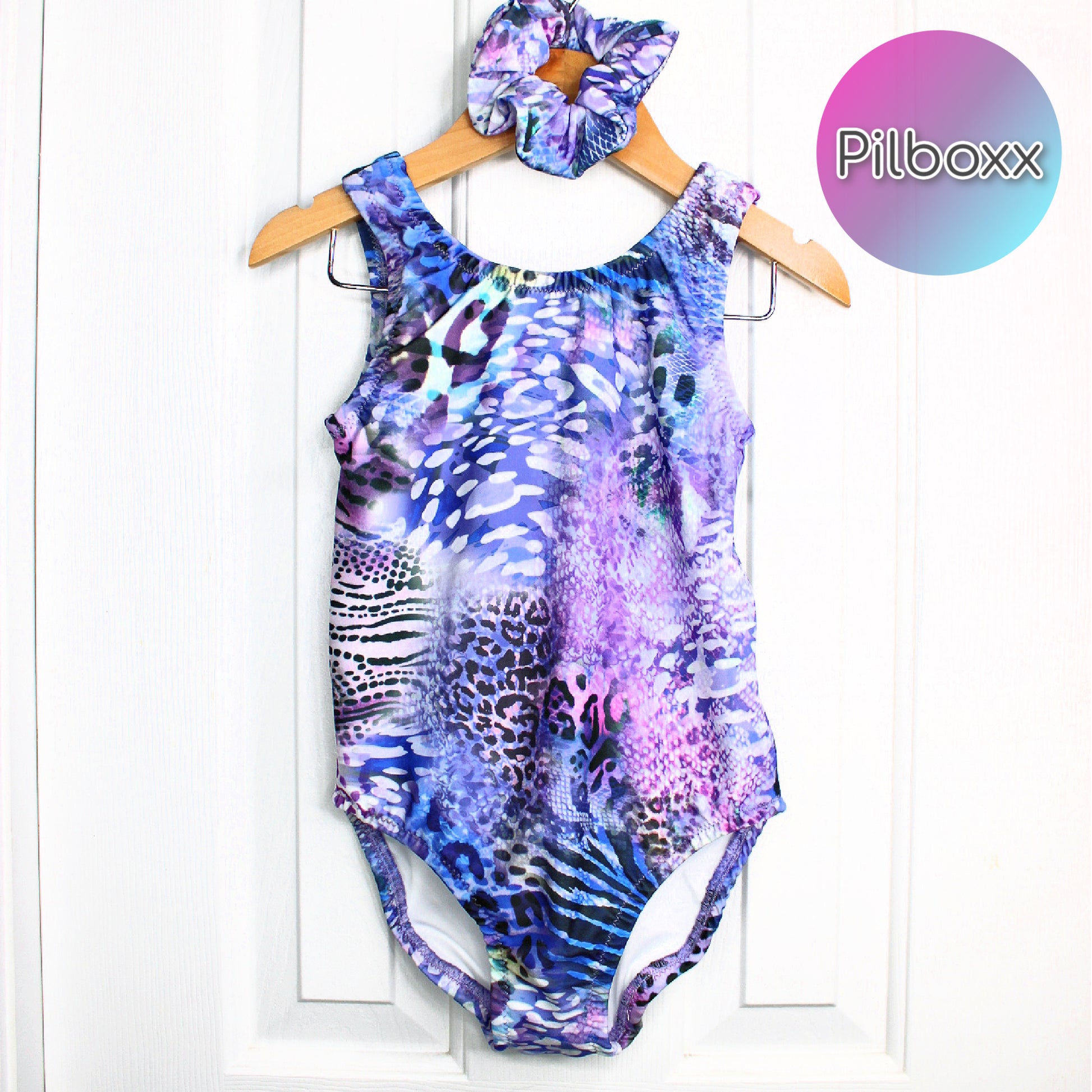 Purple Animal Print Swimsuit for Girls, 6, 7, 8, Ready to Ship