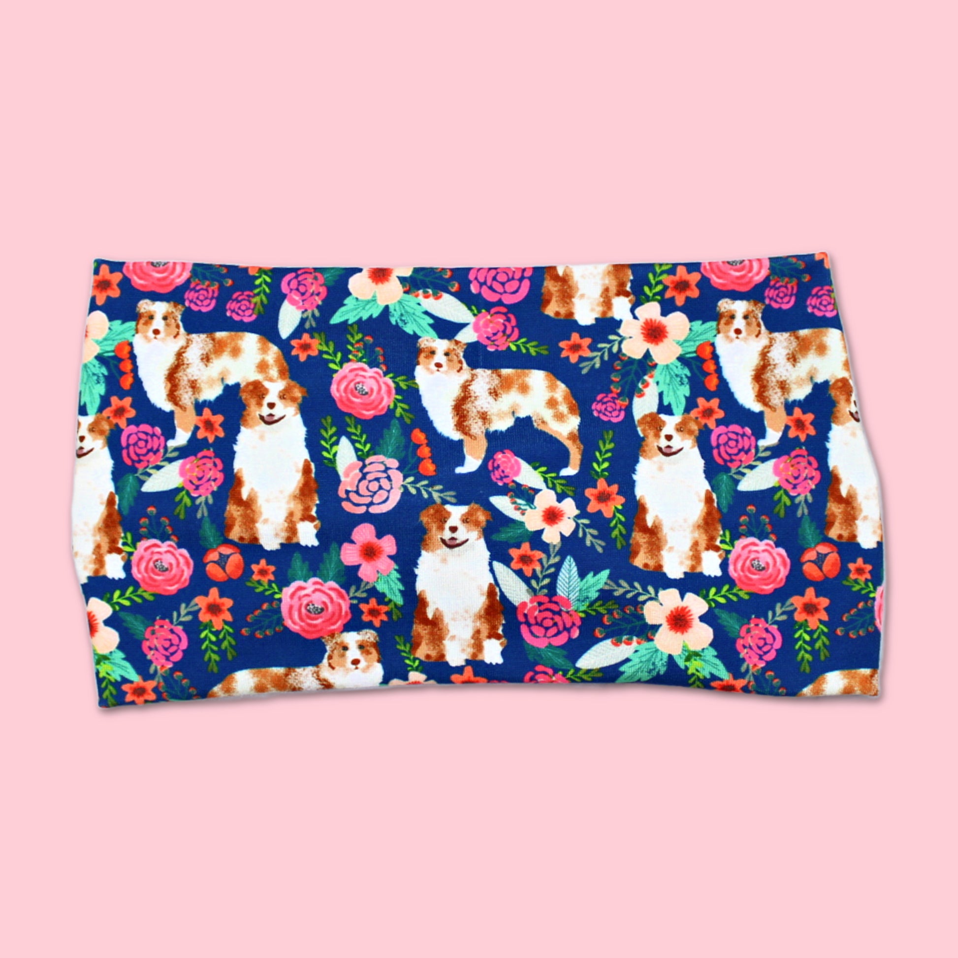 Red Merle Australian Shepherd dog print Headband with front twist. Perfect for lazy days and gym days! Handmade from lightweight, super soft stretch fabric. Gift your bestie the gift of compliments and confidence with these headbands. They're guaranteed to bring smiles and attention with all the different styles and unique prints.