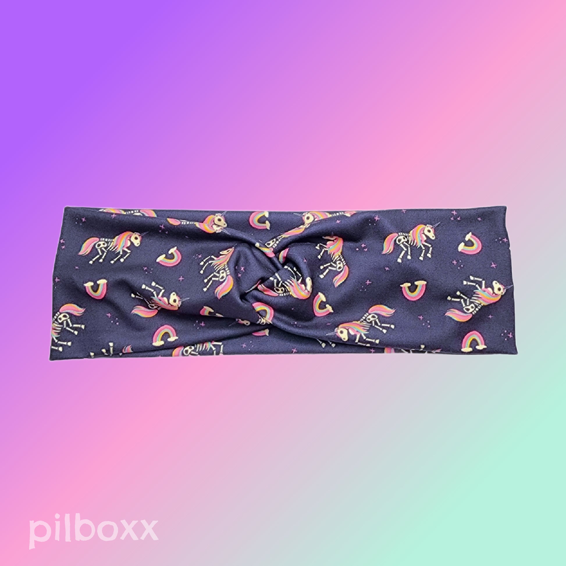Skeleton unicorn headband for Women, teens and girls with front twist. Perfect for lazy days and gym days! Handmade from lightweight, super soft stretch fabric. Gift your bestie the gift of compliments and confidence with these headbands. They're guaranteed to bring smiles and attention with all the different styles and unique prints.