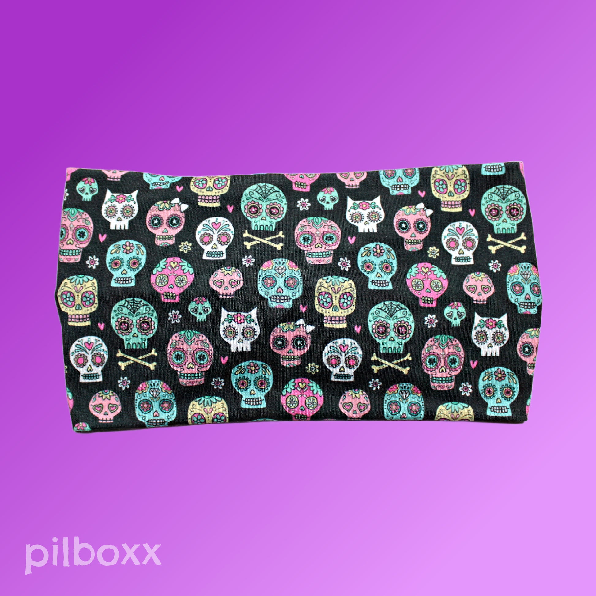 Colorful sugar skulls and crossbones headband with a front twist or flat*. Handmade from soft, custom fabric with the perfect amount of stretch. Wear this hair accessory to festivals, concerts, or parties!!
