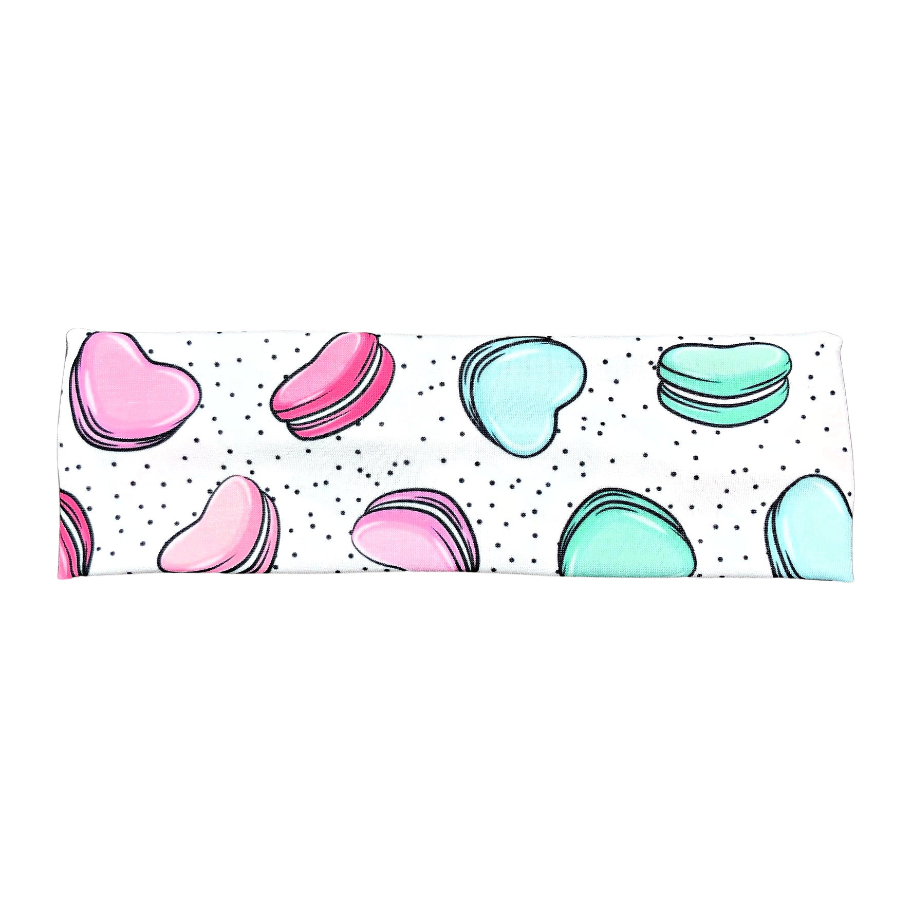 Valentine's Day Heart Cookie Headband with front twist detail. Handmade in the USA from lightweight, soft, stretchy and comfortable knit fabric for all day wear. Fits adults, teens and girls. Not intended for infants or toddlers.